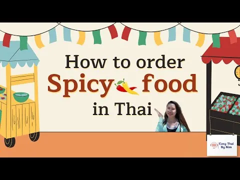مقطع تعليمي قصير يعلم كيفية طلب طعام حار بالتايلاندية وكيفية التعبير عن مستوى الحار المفضل. يغطي عبارات اساسية واسئلة شائعة من البائعين لتمكين الزوار من طلب تعديل الحار وضبط درجة حرارة الوجبة لتناسب تحملهم
