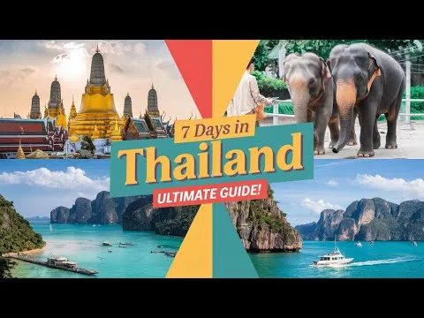 خطة قصيرة لمدة 7 ايام في تايلاند تركز على بانكوك وشيانغ ماي وبوكيت. يقترح الفيديو زيارات الى معابد واسواق بانكوك، مواقع ثقافية واسواق في شيانغ ماي، ووقت شاطئي ورحلات بين الجزر في بوكيت. يتضمن نصائح سفر، ارشادات موفقة للميزانية ومعالم بارزة مثل القصر الكبير، وات ارون، سوق الليل في شيانغ ماي والانشطة المقترحة في الجزر.