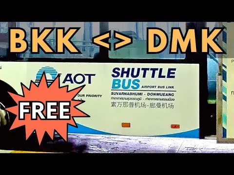 Krátký průvodce bezplatným kyvadlovým autobusem mezi bangkokskými letišti Suvarnabhumi a Don Mueang, vysvětlující kde nastoupit, frekvenci provozu a hlavní tipy.\nUrčeno, aby pomohlo cestovatelům naplánovat dostatečnou rezervu času pro přestupy mezi letišti a porozumět logistice a možným rizikům při přesunu mezi BKK a DMK