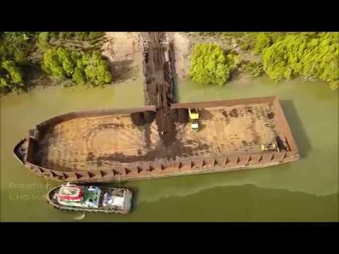 Aufnahmen von Kohleabbauarbeiten und Verladetätigkeiten in Kalimantan, mit industriellen Abläufen und einer 300ft-Barge, die Kohle auf ein Mutterschiff umlädt. Das Video dokumentiert die Logistik der Schwerindustrie und Hafenaktivitäten im Zusammenhang mit Kohleexporten und bietet visuelle Einblicke in Bergbau- und maritime Verladepraktiken.