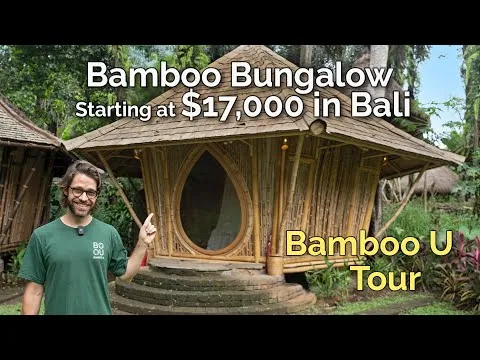 Tour showing a bamboo bungalow example with a reported $17K price point, detailing foundations, structural connections, and finishing choices. Explains design and construction decisions that influence cost, the role of craftsmanship, and trade-offs between materials, detailing, and longevity when estimating budgets for bamboo dwellings in Bali.