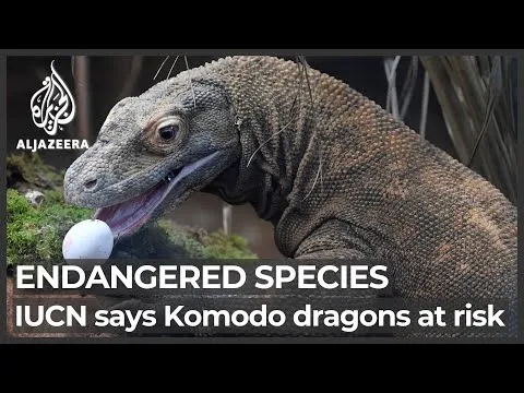 Resume d une mise a jour de la Liste rouge IUCN traitant le dragon de Komodo et d autres especes, avec des evaluations de conservation et des indications de tendance.
