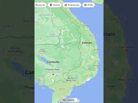 Guide visuel concis utilisant Google Maps pour montrer la position du Vietnam sur le globe et en Asie du Sud Est. La video passe d une vue mondiale a une echelle regionale en mettant en avant les frontieres, la ligne de cote et les relations avec les pays voisins et les grandes villes.