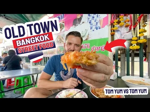 סיור אוכל באזור הבאנגלמפו והקאוסן שמשווה סגנונות טום יאם ומדגיש דוכני שכונה לאטריות חטיפים ומאכלים מקומיים אהובים הסרטון מראה כיצד למצוא מקומות אותנטיים מעבר למסלולי תיירים הומי אדם ומתאר הבדלים בהכנה ובהגשה שמייחדים את המוכרים המקומיים במרכז ההיסטורי של בנגקוק