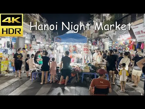 4K HDR pastaiga pa Hanojas Vecpilsētas nedēļas nogales nakts tirgus ielām, kas rāda cilvēku plūsmas līmeni, tirgus stendus un tipiskas ielas ēdienu ainas. Materiāls izceļ populārākos stendu tipus, gājēju plūsmu brīvdienās un piemērus izplatītiem ēdieniem, sniedzot vizuālu ceļvedi par to, ko apmeklētāji var sagaidīt, izpētot nakts tirgus Vecpilsētā.