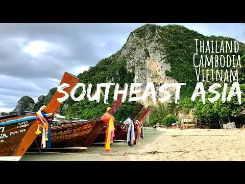 Roteiro de 20 dias pelo Sudeste Asiatico que conecta Tailandia, Camboja e Vietnam. O video descreve os principais pontos altos como ilhas Phi Phi, praia de Railay, templos e mercados de Bangkok, Angkor Wat e um cruzeiro pela baia de Halong. Cobre opcoes de transporte entre paises, passeios favoritos e experiencias chave para incluir em uma viagem por varios paises.