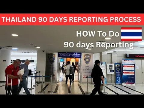 Показывает, как заполнить первый 90 дневный отчет лично в Бангкоке, давая пошаговое пояснение по бланкам, подтверждающим документам и советам по процедуре на месте. Подчеркивается, что первоначальная подача TM.47 часто требует личного присутствия и указываются практические моменты на иммиграционных стойках.