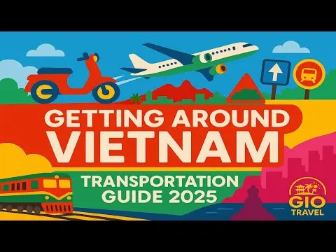 Pregled koji upoređuje kako se kretati po Vijetnamu 2025, pregledajući domaće letove, vozove, autobuse sa ležajevima, motocikle i taksije ili aplikacije za vožnju. Nudi savete za izbor prevoza prema ruti, budžetu i preferencijama udobnosti, i daje napomene o vremenu putovanja, zgodnosti i kada je koji način najpraktičniji za međugradsku i regionalnu putovanja.