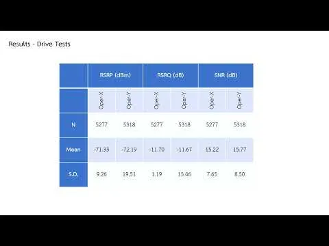 Teknisk oversikt over utvardering av 5G prestanda i Thailand med både stationara och rortester.