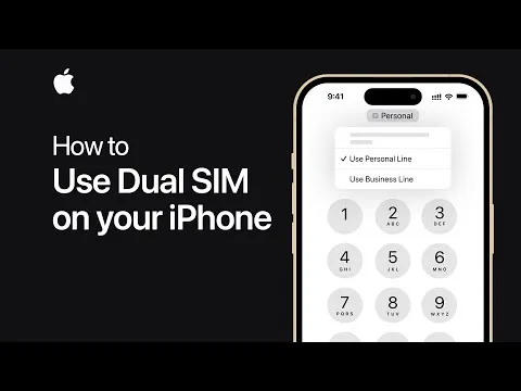 Officiell Apple genomgang som förklarar hur du använder två linjer på iPhone inklusive eSIM installation. Videon går igenom val av standardlinjer för samtal meddelanden och mobildata och ger vägledning för att behålla ditt hemnummer aktivt samtidigt som onödiga roamingavgifter undviks