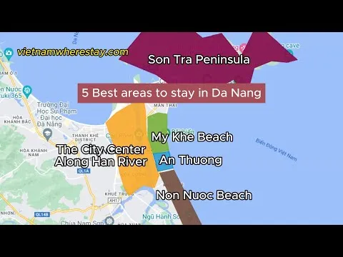 Muhtasari wa maeneo tano bora ya kukaa Da Nang kulingana na vipaumbele vya watalii: katikati ya mji kando ya mto Han, Ufukwe wa My Khe, Ufukwe wa Non Nuoc, An Thuong na Peninsula ya Son Tra.
