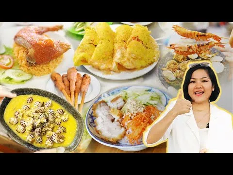 Uwasilishaji wa vyakula nane vya kienyeji vya kujaribu katika Da Nang ikijumuisha mi quang banh mi banh xeo bun mam maandalizi mbali mbali ya vyakula vya baharini com ga bun cha ca na banh canh.
