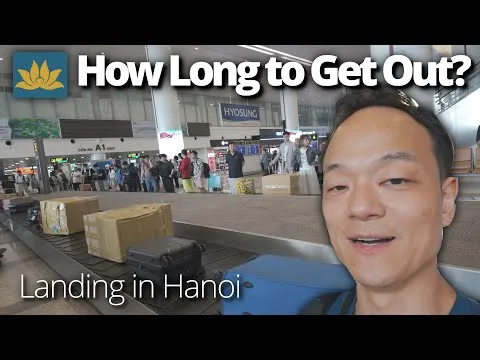 Mwongozo wa kuwasili wa vitendo kwa Uwanja wa Ndege wa Kimataifa Noi Bai Hanoi unaoonyesha kutua, ukaguzi wa pasipoti, upokeaji wa mizigo na forodha. Mwendesha kipindi anakokota muda wa kila hatua ili kutoa matarajio ya kweli ya usindikaji wa kuwasili na anaelezea mpangilio na mgawanyo wa maeneo ya terminal za ndani na za kimataifa.