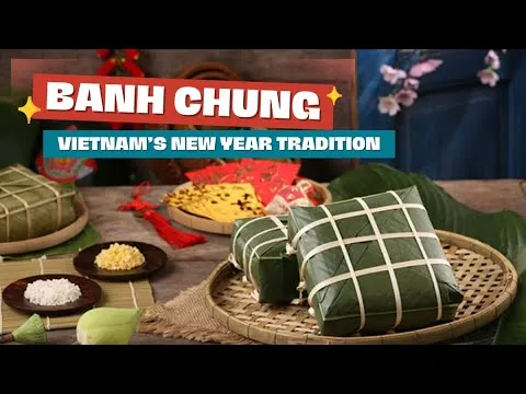 Banh Chung un, geleneksel kare yapisli yapiskan pirinc kekinin aciklamasi; bu kek Vietnam ay yeni yili kutlamalarinin merkezindedir ve kultursel ile tarihsel onemini aciklar.