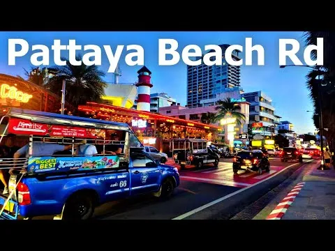 Вечірня поїздка від кільця Dolphin Roundabout вздовж Pattaya Beach Road до South Pattaya з демонстрацією визначних місць і зміни атмосфери з півночі на південь.
