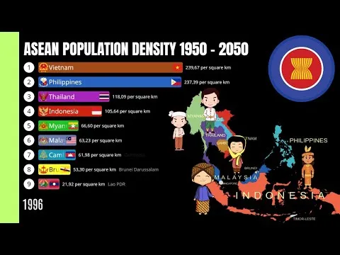 Регіональний аналіз щільності населення країн АСЕАН з 1950 по 2050 рік без урахування Сінгапуру.