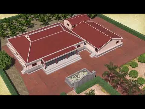 Коротка візуальна презентація будинку ruong у Хюе, що підкреслює характерні елементи деревяної архітектури центрального Вєтнаму. Кліп показує деревяний каркас, черепичний дах, систему колон і балок та різьблені деталі, а також ілюструє, як внутрішні простори повязані з навколишніми садами.